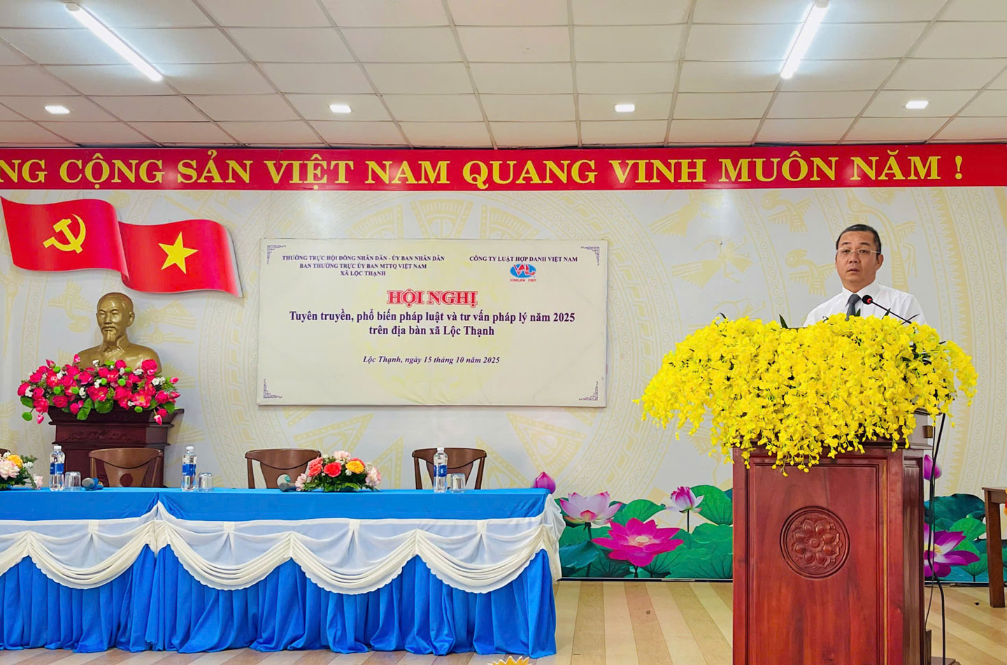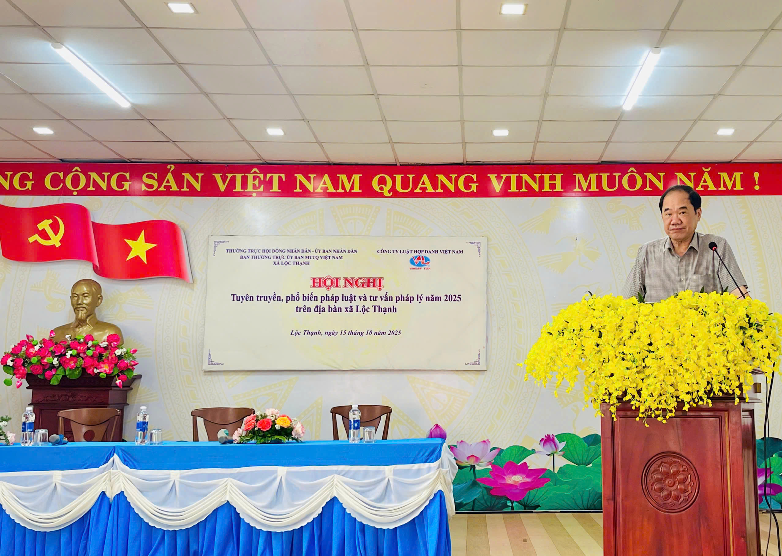 Buổi tuyên truyền pháp luật và tư vấn, trợ giúp pháp lý cho hơn 120 người là cán bộ xã và đồng bào dân tộc xã Lộc Thạnh được tổ chức vào ngày 15/10/2025 tại Hội trường Nhà Văn hóa xã Lộc Thạnh, tỉnh Đồng Nai với sự hỗ trợ của Lãnh đạo Đảng ủy xã, Ủy ban nhân dân, Hội đồng nhân dân và Mặt trận tổ quốc Việt Nam xã Lộc Thạnh phối hợp cùng đoàn tư vấn của Công ty luật.